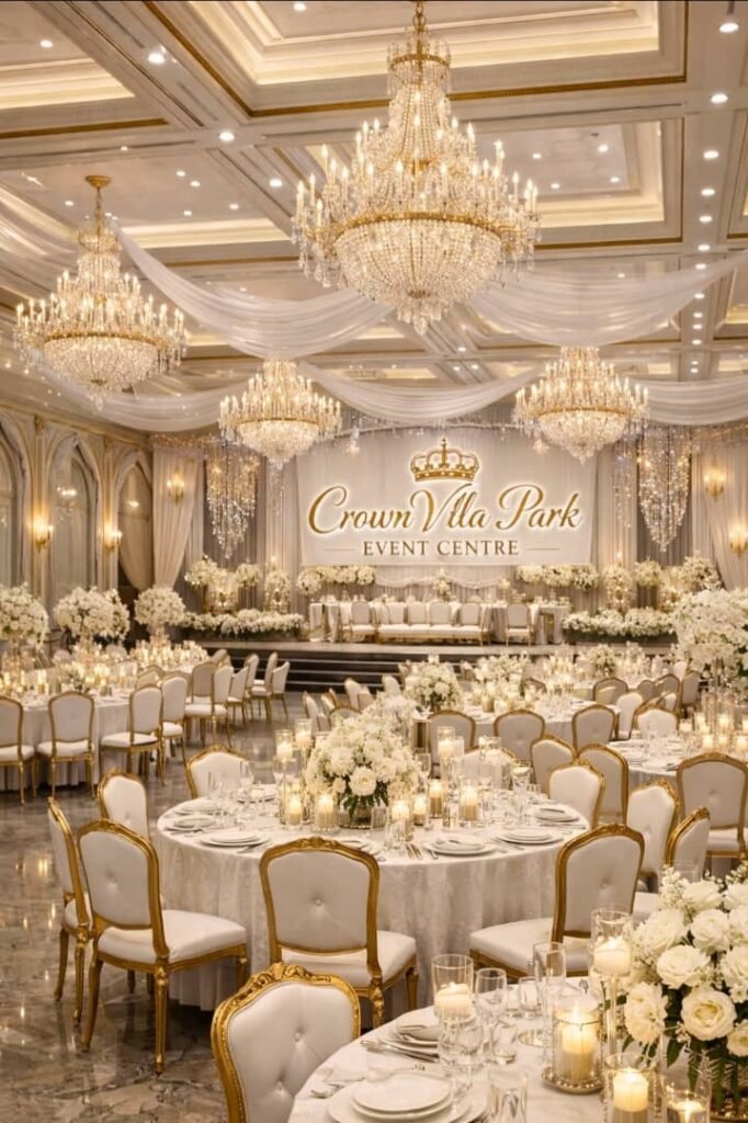 Step into our elegant indoor venues at Crown Villa Park. Bringing sophisticated design and functional excellence to intimate celebrations.